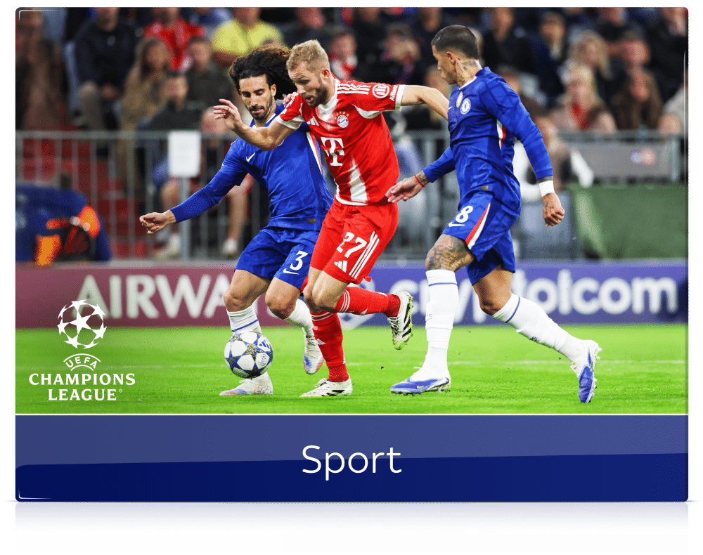 | Inhalte | Sky Sport Paket + Sky Bundesliga Paket (ADMIRAL Bundesliga, Deutsche Bundesliga, UEFA Champions League, Europa League, Conference League, Tennis, Golf, Premier League und vieles mehr)! |